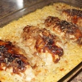 Sprinkle Lipton onion soup evenly on top of chicken breasts.
